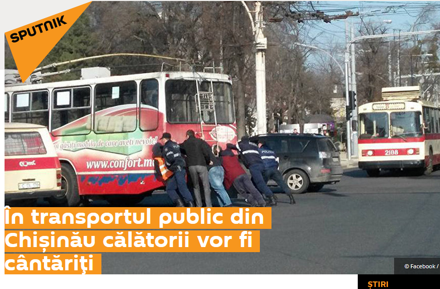 1. Cei de la Sputnik.md au scris că „În transportul public din Chișinău călătorii vor fi cântăriți”. Conform glumei, prețul biletelor nu va mai fi pentru toți egal, ci fiecare pasager va achita în dependență de câte kilograme are. (vezi sursa)
