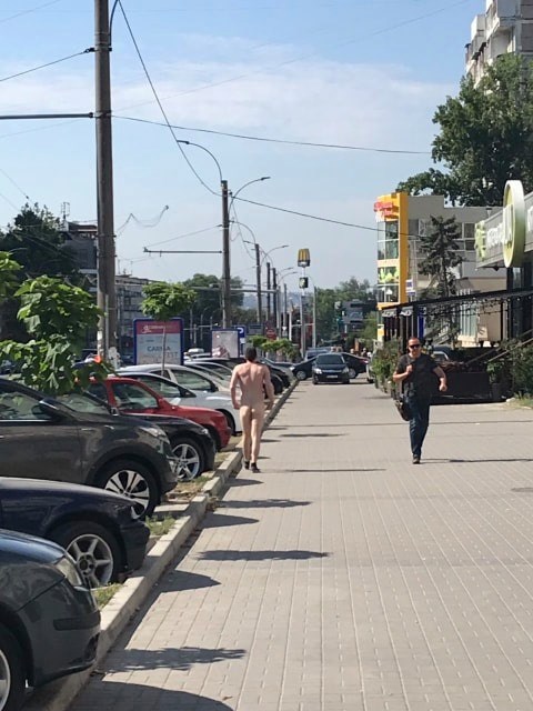 Fie din cauza căldurii prea mari, fie din alt motiv, un bărbat a decis să iasă pe stradă gol-pușcă. Acesta a fost surprins astăzi plimbându-se liber pe bd. Moscovei din orașul Chișinău, în apropiere de localul McDonald’s.