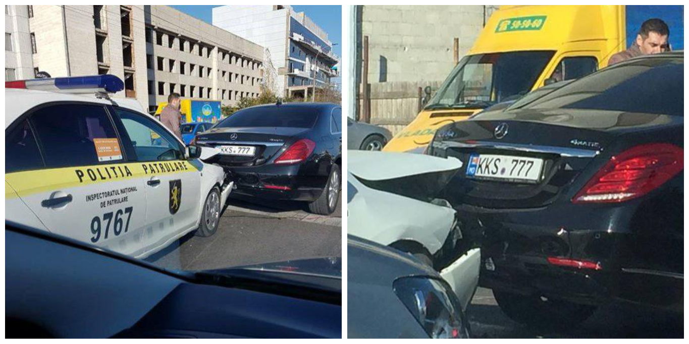 Accident rutier în această după amiază pe strada Mihai Viteazul din Chișinău. Un automobil de marcă Mercedes S Class a fost lovit astăzi din spate de către un automobil al Inspectoratului Național de Patrulare.