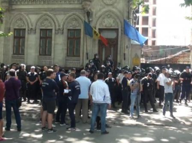 Zeci de polițiști și scutieri protejează sediul Platformei „Demnitate și Adevăr”, condus de Andrei Năstase. Scutierii s-au poziționat în fața clădirii, la un miting organizat de reprezentanții federațiilor sportive, care îi cer lui Andrei Năstase să nu „saboteze” construcția „Arenei Chișinău”.