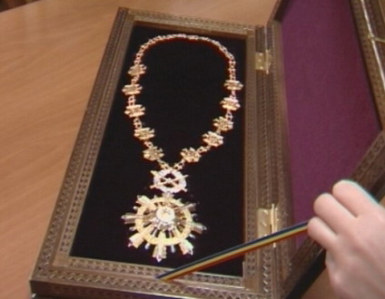 Colanul costă circa 150.000 de lei și a fost confecţionat acum trei ani special pentru ceremonia de învestire a președintelui. Nicolae Timofti este primul care a purtat bijuteria la ceremonia de învestire în funcția de şef de stat.