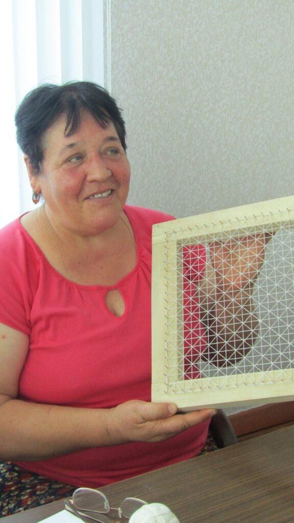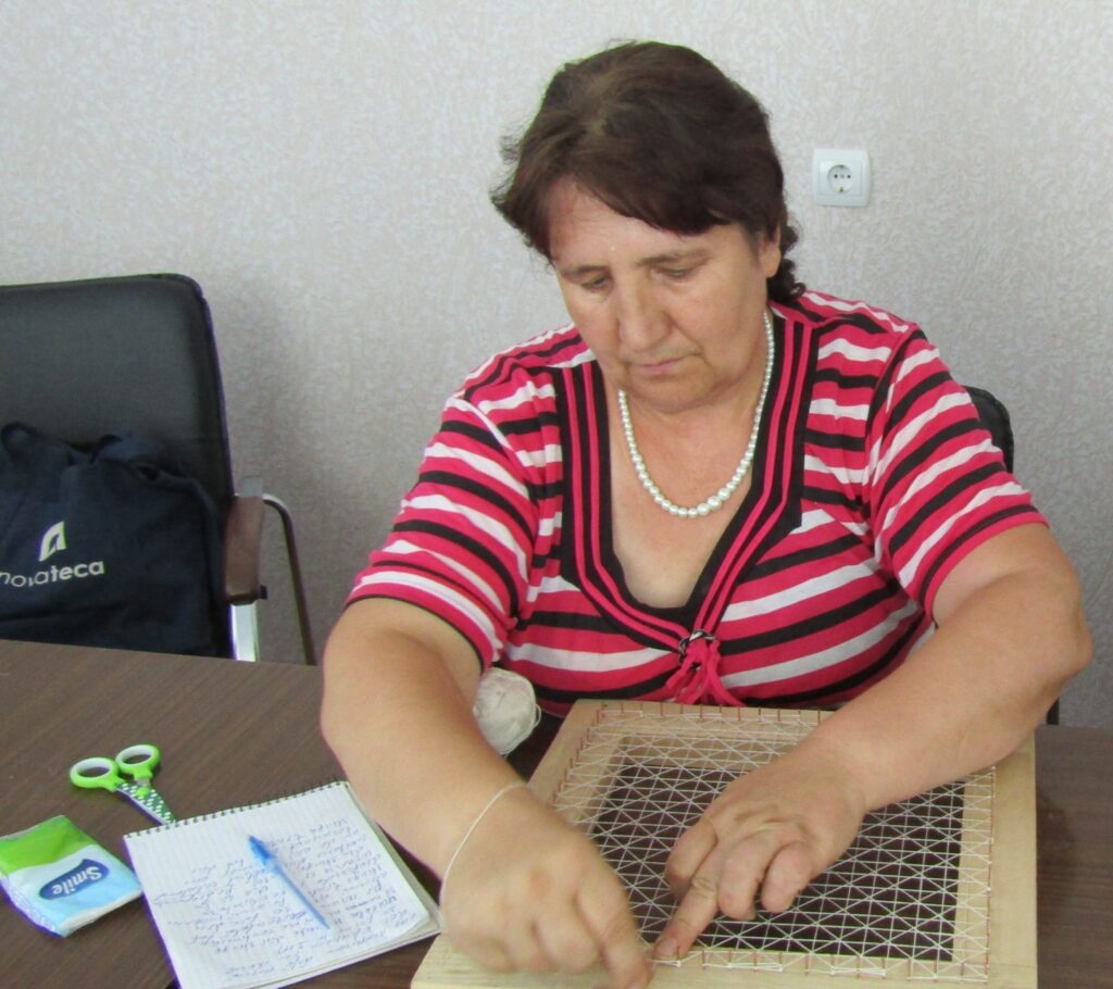 „Eu sufăr de mielofibroză, o boală foarte complicată și grea, care îmi afectează oasele. Nu pot să mă deplasez fără ajutor și nici nu pot sta mult timp în picioare. Din cauza oaselor fragile, am multe fracturi, iar perioada de reabilitare este foarte lungă, uneori depășește și jumătate de an. Aștept cu nerăbdare zilele în care d-na Rodica Buzila vine la mine. Aceste activități sunt ca o alinare, o mângâiere, mă ajută mult și îmi alungă gândurile rele. Astfel, pot să câștig și o sursă de venit. Am înțeles că pentru a face o lucrare reușită, trebuie să depui mult suflet, dar și multă răbdare”, spune Oxana Leca.