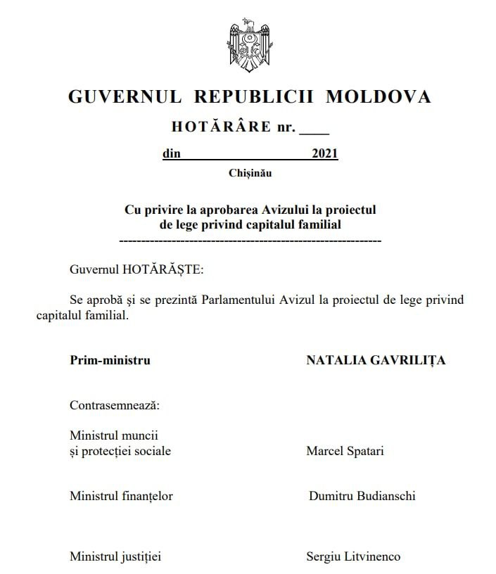 Ministerul Muncii și Protecției Sociale afirmă într-un aviz negativ dat la un proiect de lege înaintat de deputații PSRM că ”încercările de a încuraja nașterea mai multor copii la etapa actuală nu va avea alt rezultat decât emigrarea acestor copii împreună cu părinții sau individual când vor ajunge în vârsta economic activă”. Afirmația se conține în textul avizului la inițiativa socialiștilor cu privire la instituirea unei noi prestații sociale – Capitalul familial. Documentul este semnat de ministrul Muncii, Marcel Spătari, cel al Finanțelor, Dumitru Budianschi, și premierul Natalia Gavrilița.