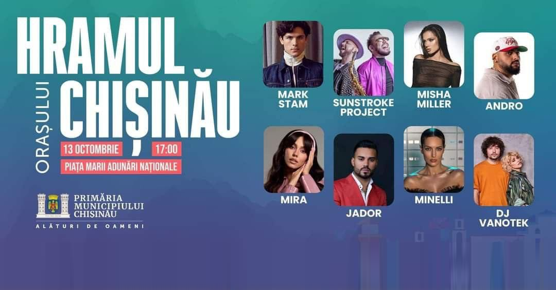 Festivitățile vor începe pe 13 octombrie, când Piața Marii Adunări Naționale va deveni locul principal al evenimentelor, fiind dedicată în totalitate tinerilor și atmosferei vibrante. Concertul din această zi va reuni artiști de renume, precum Mark Stam, Sun Stroke Project, Misha Miller, Andro, Mira, Minelli, DJ Vanotek și Jador, care promit un spectacol memorabil. „Va fi o seară plină de bucurie și emoții, un prilej perfect pentru toți cei care iubesc muzica și distracția”, anunță organizatorii.