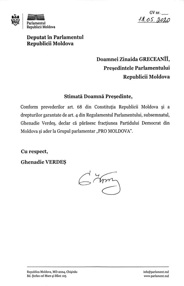 Ex-democratul Ghenadie Verdeș a declarat că aderă la grupul parlamentar PRO MOLDOVA, după ce a părăsit rândurile PDM, transmite Telegraph.md