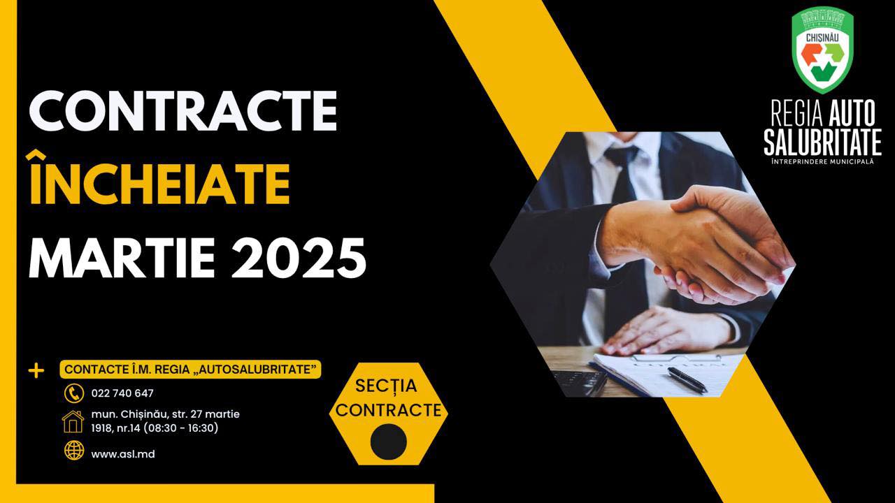 Întreprinderea Municipală „Autosalubritate” informează că, în luna martie 2025, a semnat aproximativ 120 de contracte noi, ca urmare a cererilor primite. Dintre acestea, aproximativ 75 de contracte au fost încheiate cu persoane juridice, respectiv agenți economici, iar 46 cu persoane fizice, din sectorul particular.