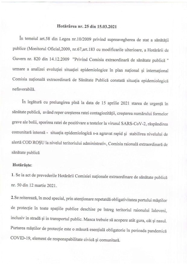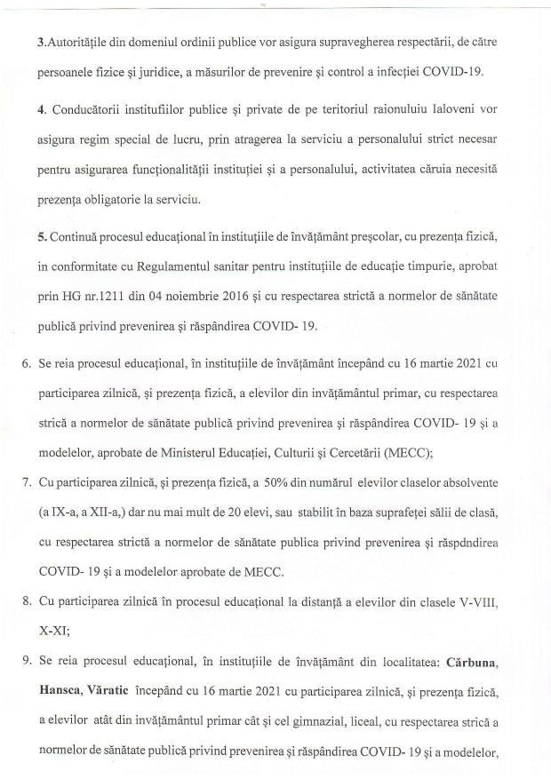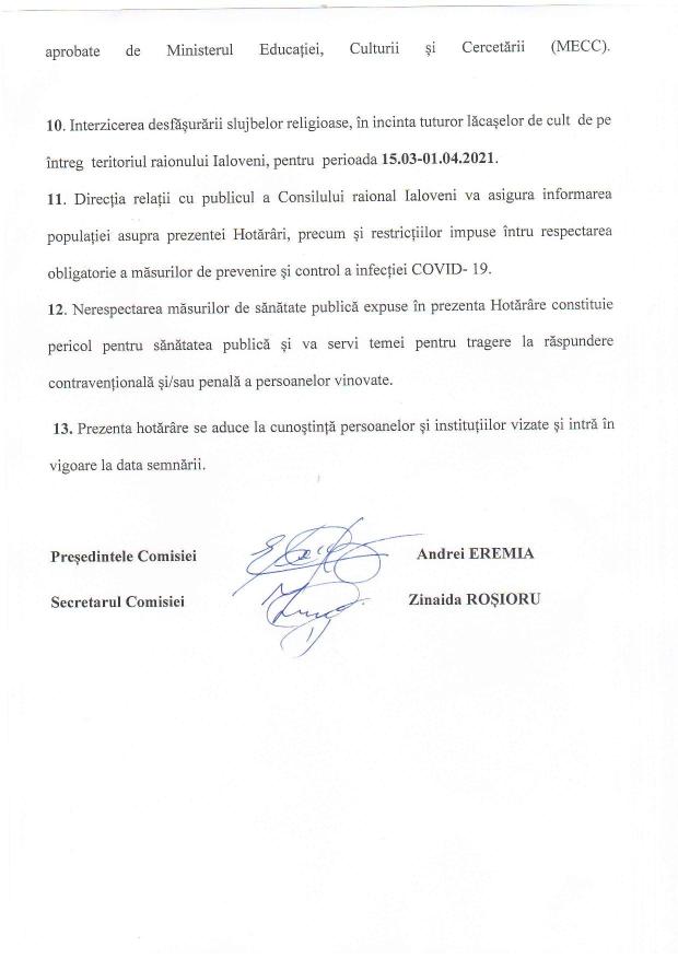Totodată, în perioada 15 martie-4 aprilie se interzice desfășurarea slujbelor religioase în incinta tuturor lăcașelor de cult de pe întreg teritoriul raionului Ialoveni.