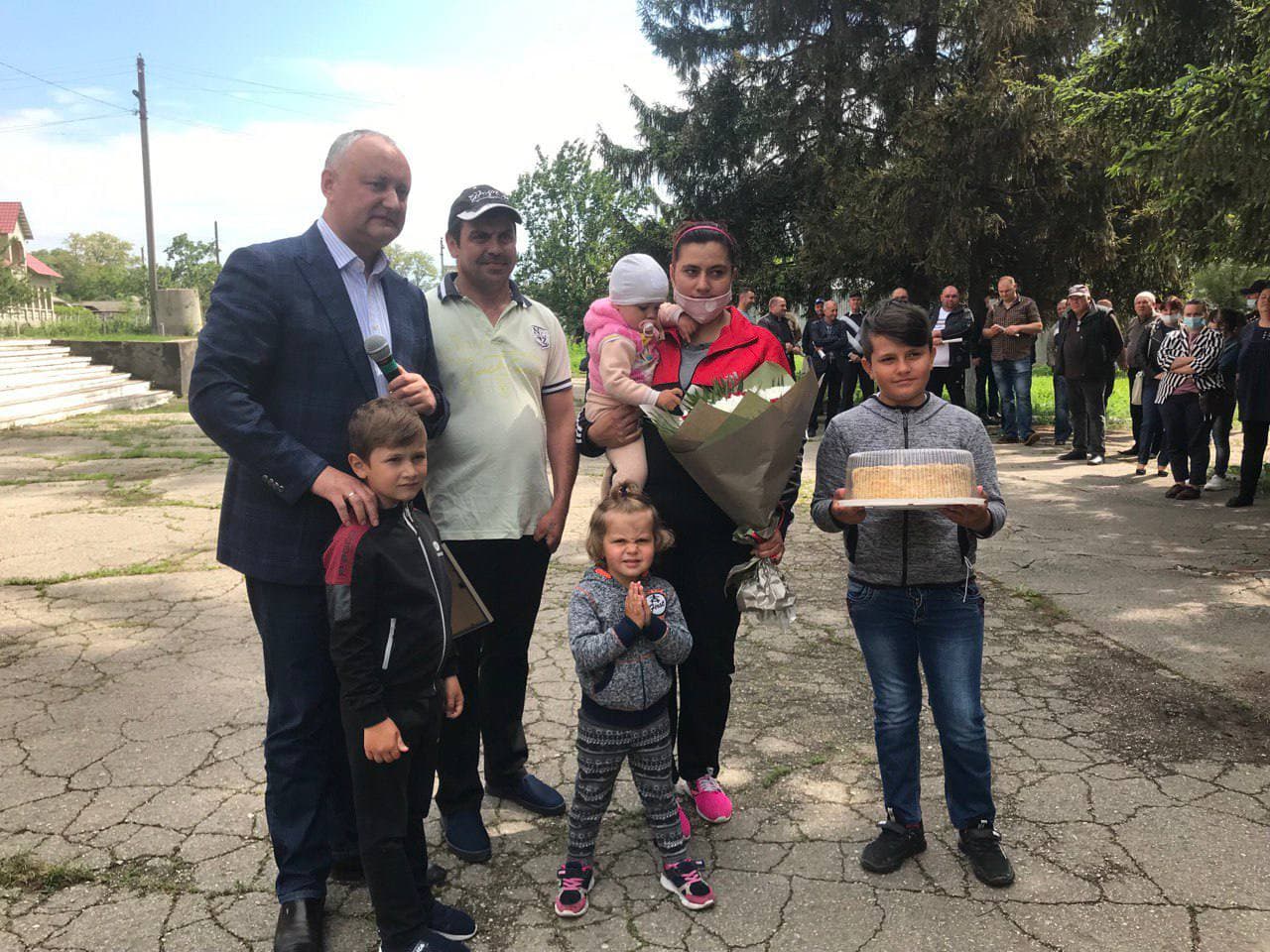 ”Prima familie numeroasă pe care am felicitat-o astăzi este a lui Victor și Radiana Lungu, care educă împreună patru copii. Le-am înmânat Diploma de onoare și le-am urat sănătate și fericire”, a scris Igor Dodon.