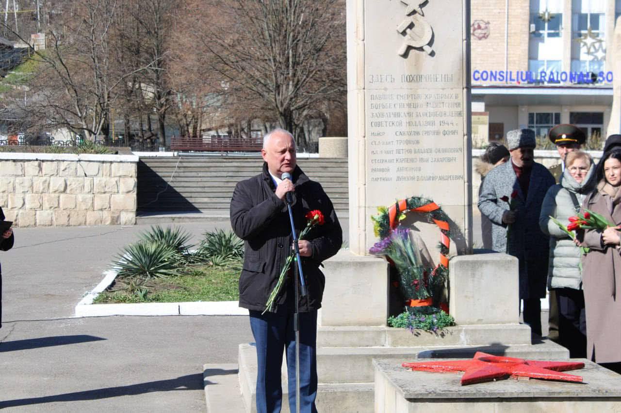 „Începem un ciclu de evenimente dedicate celebrării a 80 de ani de la Victoria în Marele Război pentru Apărarea Patriei. În lunile următoare, vom vizita toate orașele țării care marchează aniversarea eliberării de sub ocupația fascistă”, a declarat Dodon.