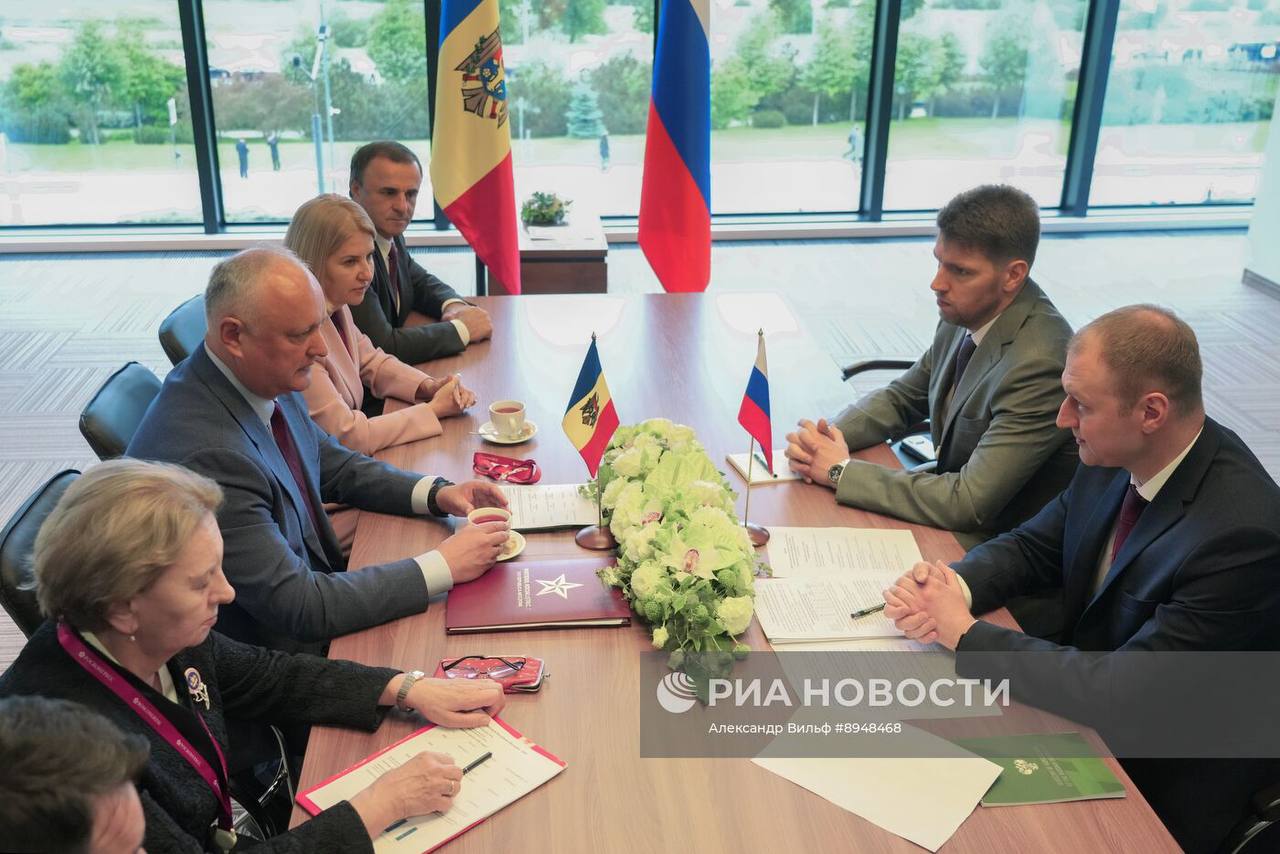 În marja Forumului Economic Internațional de la Sankt Petersburg, Președintele Partidului Socialiștilor din Republica Moldova, Igor Dodon, a avut o întrevedere cu adjunctul ministrului Agriculturii al Federației Ruse, Andrei Razin.