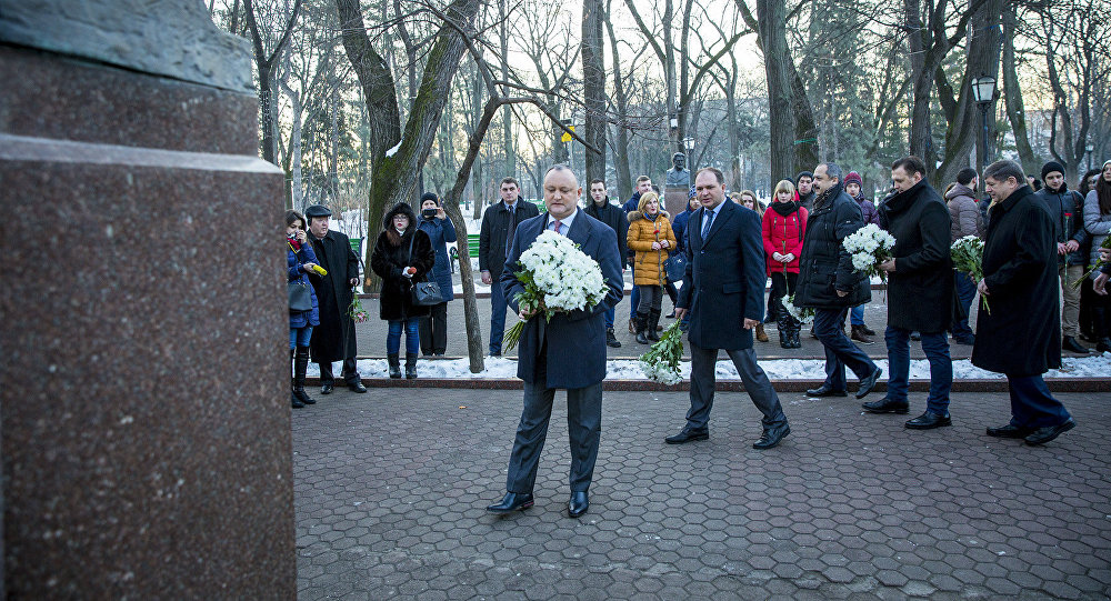 Președintele Republicii Moldova, Igor Dodon, a depus flori la bustul lui Mihai Eminescu, cu ocazia celebrării celei de a 169-a aniversare de la nașterea marelul poet român.