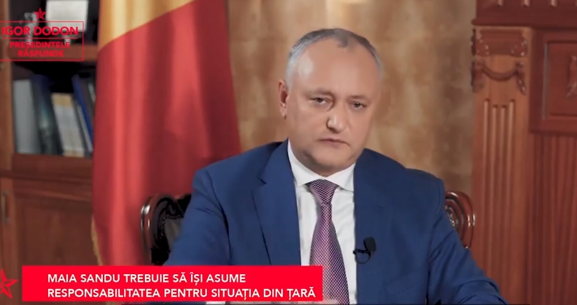 Igor Dodon o îndeamnă pe Maia Sandu să-și asume responsabilitatea, în calitate de președinte ales, și să numească un nou Guvern. Despre aceasta Dodon a declarat în cadrul emisiunii live „Președintele răspunde”, transmite Telegraph.md, cu referire la Primul.md