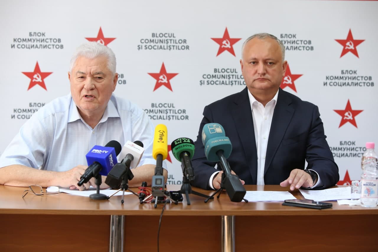 Liderii Blocului Comuniștilor și Socialiștilor Vladimir Voronin, președinte al PCRM, și Igor Dodon, președinte al PSRM, ex-președinți ai Republicii Moldova, au susținut o conferință de presă comună pe finalul campaniei electorale pentru alegerile parlamentare anticipate din 11 iulie.