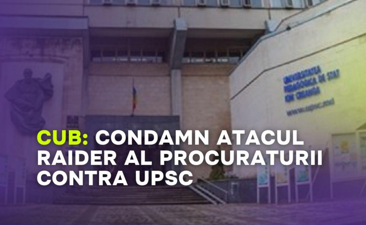 Coaliția pentru Unitate și Bunăstare (CUB) condamnă încercările Procuraturii de a intra în posesia blocului de studii deținut de UPSC (Universitatea Pedagogică „Ion Creangă”). Tentativele recente ale guvernului de a deposeda UPSCE și de a i-o transmite Procuraturii, la solicitarea sa oficială, demonstrează o surprinzătoare lipsă de respect pentru școala pedagogică și știință.