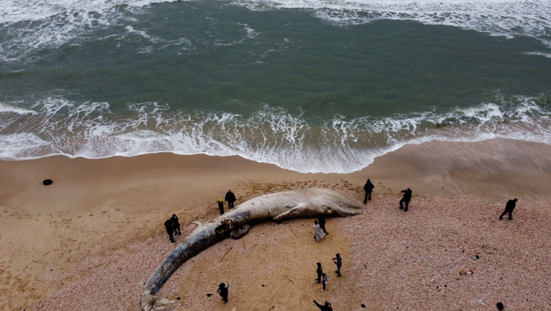 O balenă moartă lungă de 17 metri a fost adusă de valuri pe o plajă din sudul Israelului, la sfârșitul săptămânii trecute. Probele prelevate de la animal vor determina cauza morții, însă oficialii cred că balena a fost ucisă de apa otrăvită, zona fiind poluată masiv, inclusiv cu gudron.