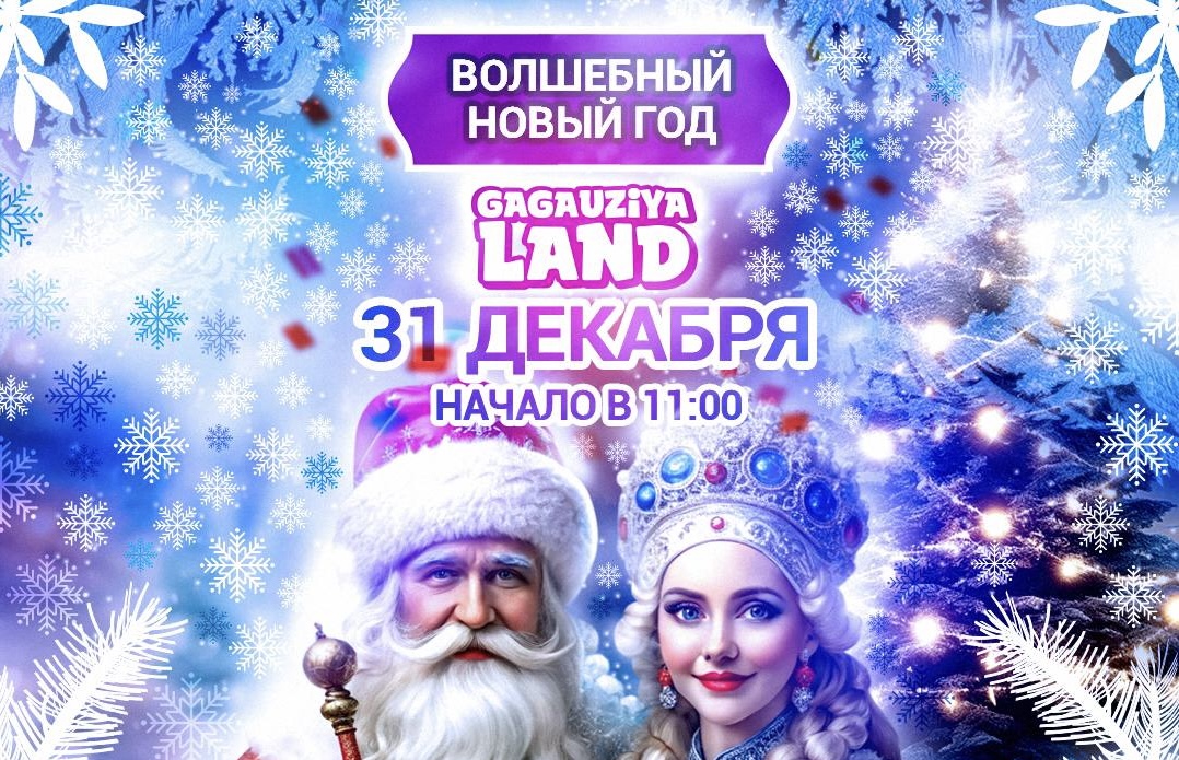 Pe 31 decembrie, începând cu ora 11:00, GagauziyaLand va găzdui un eveniment special dedicat sărbătorii de Anul Nou, care promite să aducă magie și bucurie pentru întreaga familie. Atmosfera de poveste va fi animată de Moș Crăciun și Crăciunița, care vor invita copiii și adulții la hore și dansuri festive.
