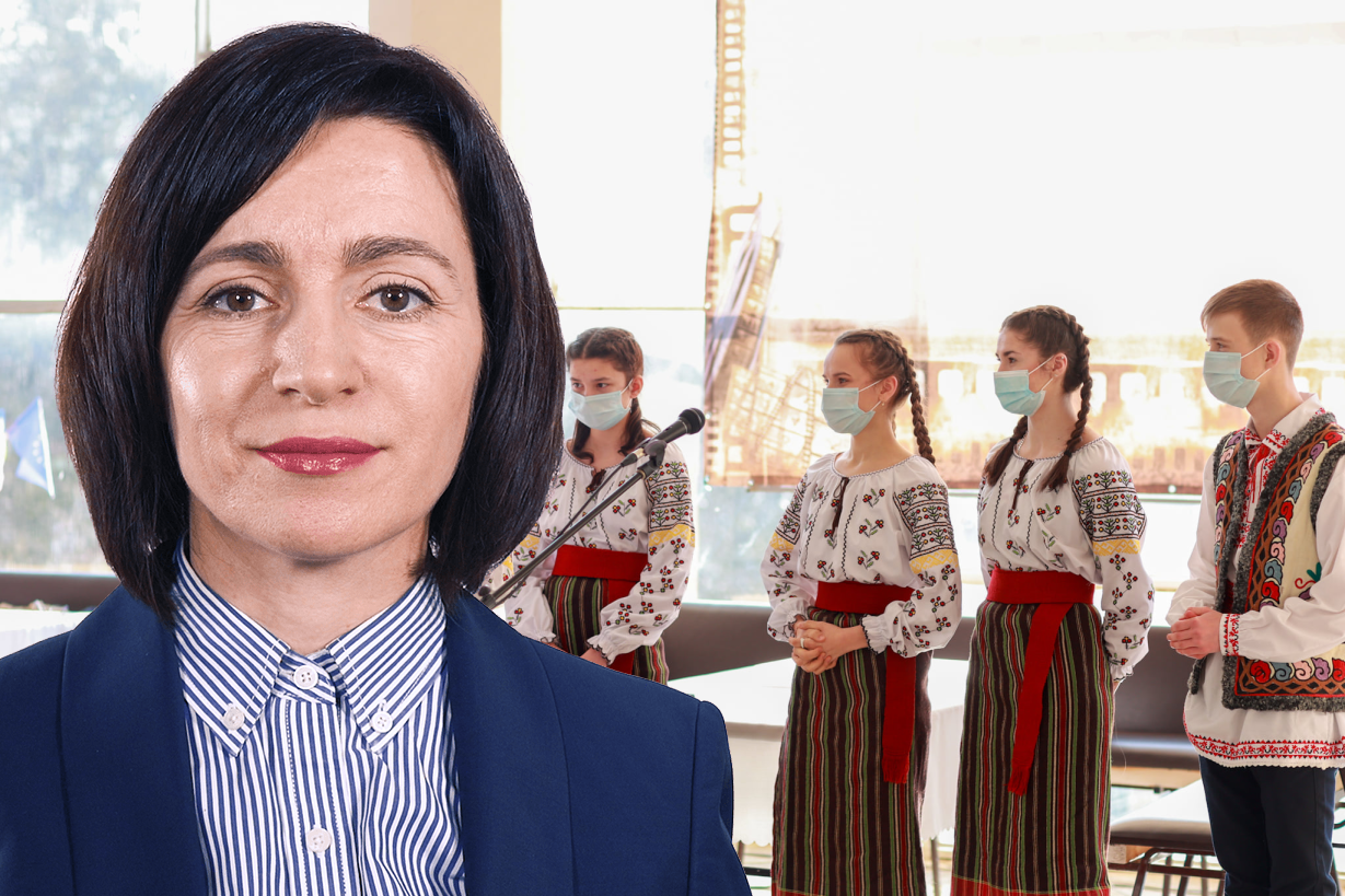 În plin val pandemic, cu sala plină, președintele Maia Sandu a ”ascultat cu bucurie” colindele cântate de copiii din Mingir și Voinescu, acolo unde a efectuat astăzi o vizită de lucru.