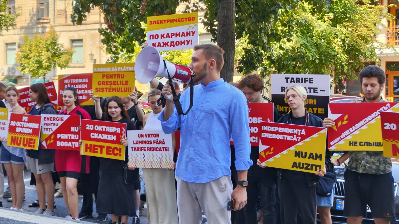 Participanții la acțiune și-au exprimat nemulțumirea față de politica energetică a regimului Sandu-PAS, care preferă să cumpere energie electrică din România la un preț de câteva ori mai mare decât cel pe care îl poate oferi CTE-ul moldovenesc de pe malul stâng al Nistrului.