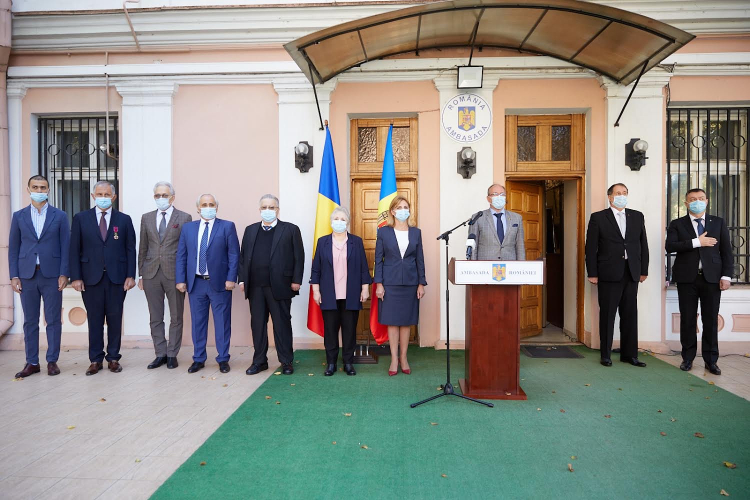 Diplomatul român a precizat că ceremonia de astăzi face parte din ciclul de acțiuni organizate pentru marcarea Centenarului Teatrului Național „Mihai Eminescu” de la Chișinău, unul din bastioanele culturii românești din Republica Moldova. „Este un privilegiu să am alături de mine profesori, cercetători și manageri iscusiți și neobosiți, vrăjitori ai cuvintelor și culorilor, într-un cuvânt, osmeni care și-au pus amprenta pentru totdeauna în domeniille în care acționează, oameni care au acționat consecvent, întru atingerea idealurilor”, a subliniat diplomatul român.