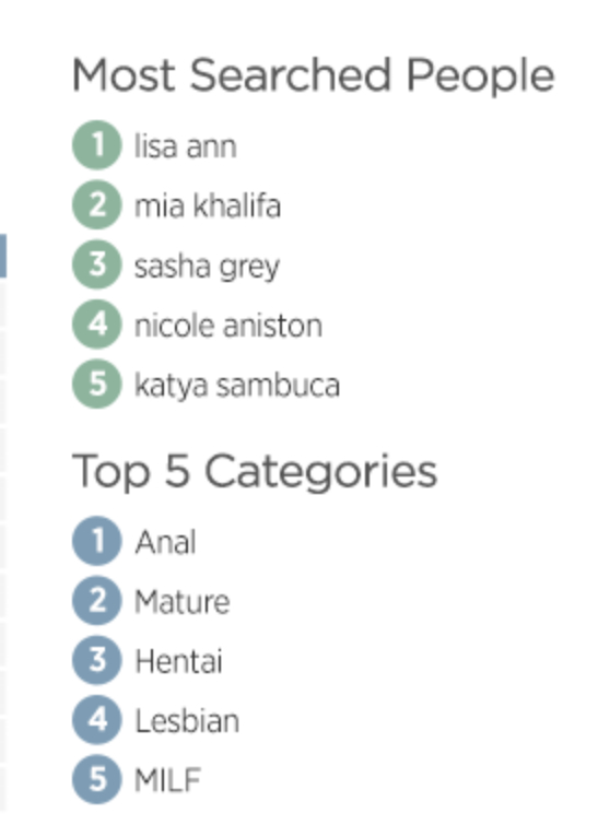 În topul mondial al căutărilor, lesbienele au fost cele mai populare. Filmele cu acestea au fost şi cele mai accesate de către femei, în schimb bărbații au preferat femeile mature.