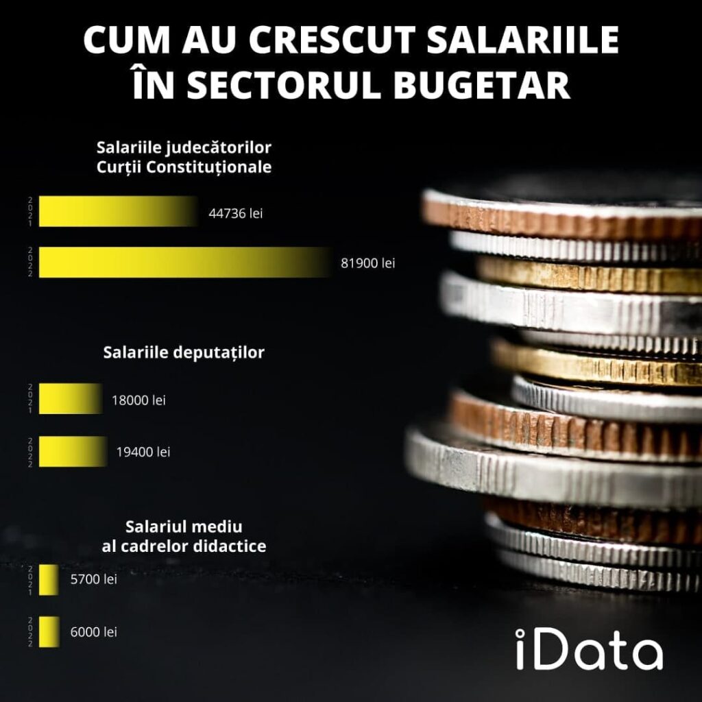„Salarii mai mari pentru deputați și pentru magistrații Curții Constituționale. Potrivit proiectului bugetului de stat pentru 2022, votat în a doua lectură, salariile magistraților CC vor crește cu aproape 37,164 de lei. Astfel, magistrații de la CC vor primi aproape 82 000 de lei lunar în anul următor. De asemenea, documentul prevede majorarea salariilor pentru aleșii poporului cu 1400 de lei. În anul 2022 salariul unui deputat va ajunge la 19 400 lei. Și pe lângă aceste majorări semnificative, vor crește și salariile cadrelor didactice. Doar că salariul mediu al unui lucrător din învățământ va crește doar cu 316 lei și va constitui 6000 de lei în anul 2022”, scrie IData.