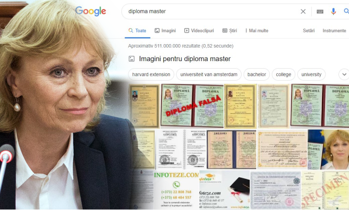 La căutarea cuvintelor cheie ”diploma master”, Google afișează în mod prioritar imagini cu diploma de master a Alei Nemerenco, consilier prezidențial, după care și alte specimene.