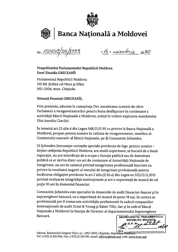 Cu puțin timp în urmă, Lustrația a publicat două scrisori adresate Președintelui Parlamentului, Zinaida Greceanîi prin care Octavian Armașu propune numele a doi candidați care ar urma să fie numiți în funcția de viceguvernatori. Este vorba de ȘCHENDRA Constantin și Maia Pârcălab. Pentru că au părut incomplete, Lustrația a decis să completeze cu informații verificate CV-urile celor două personaje apropiate de clanul Phahotniuc-Candu.