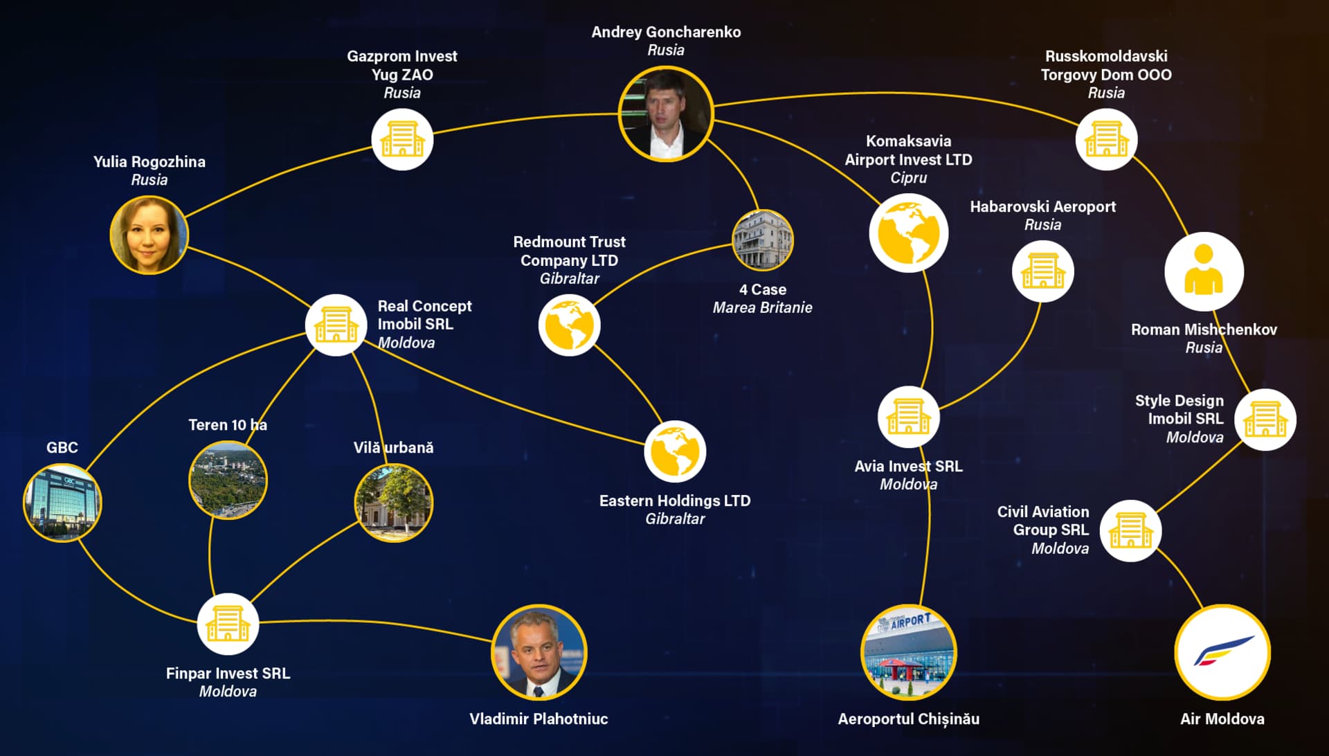Prin intermediari și firme-paravan, conexiunile lui Goncharenko duc la câteva proprietăți de milioane care au aparținut fostului lider democrat Vladimir Plahotniuc, fugit din țară în vara lui 2019.