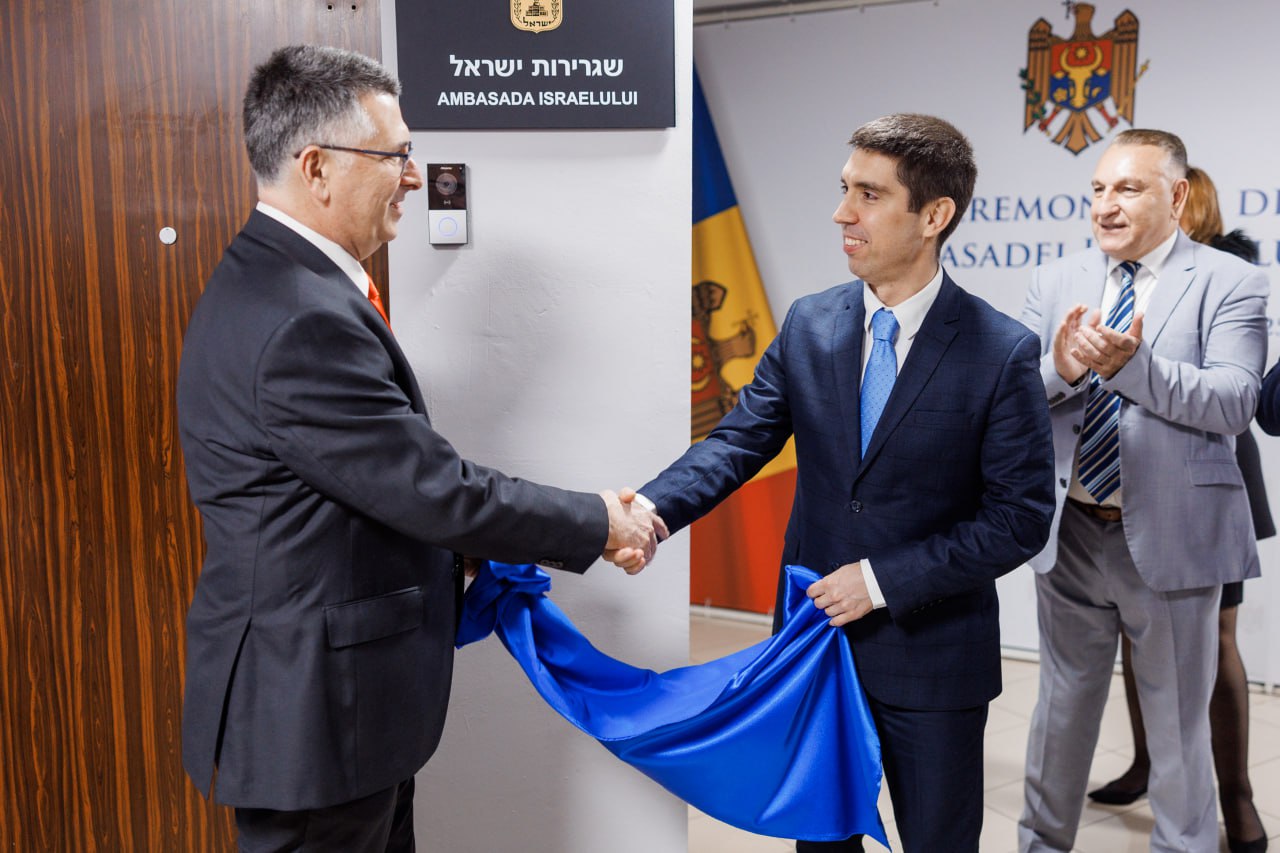 Evenimentul s-a încheiat cu dezvelirea oficială a plăcii ambasadei Statului Israel la Chișinău, simbolizând deschiderea unui nou capitol în relațiile dintre cele două state.