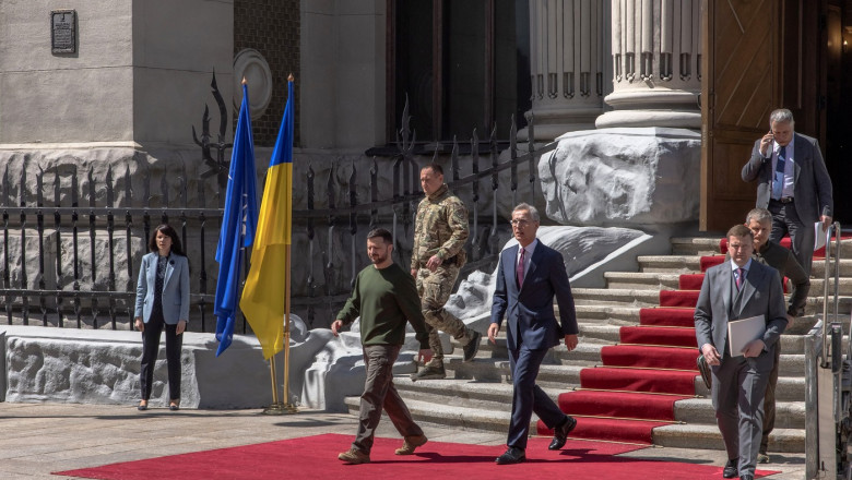 Într-o vizită neanunțată în Ucraina, secretarul general al Alianței militare transatlantice a purtat discuții cu președintele Volodimir Zelenski și urma să se adreseze parlamentului ucrainean (Rada), scrie Reuters.