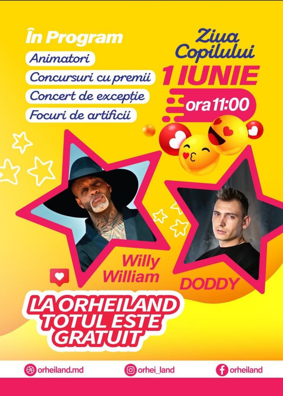 În 1 iunie, de Ziua Internațională a Copilului, surprizele se vor ține lanț la OrheiLand, cel mai mare parc de distracții din țară și din regiune, unde totul este gratuit. Pe scena de pe teritoriul parcului, va mai urca un artist de renume. Este vorba despre interpretul din România, Dumitru Claudiu, cu numele de scenă Doddy, care, împreună cu Willy William și alți interpreți autohtoni, vor încinge atmosfera de sărbătoare, cu ocazia redeschiderii OrheiLand.