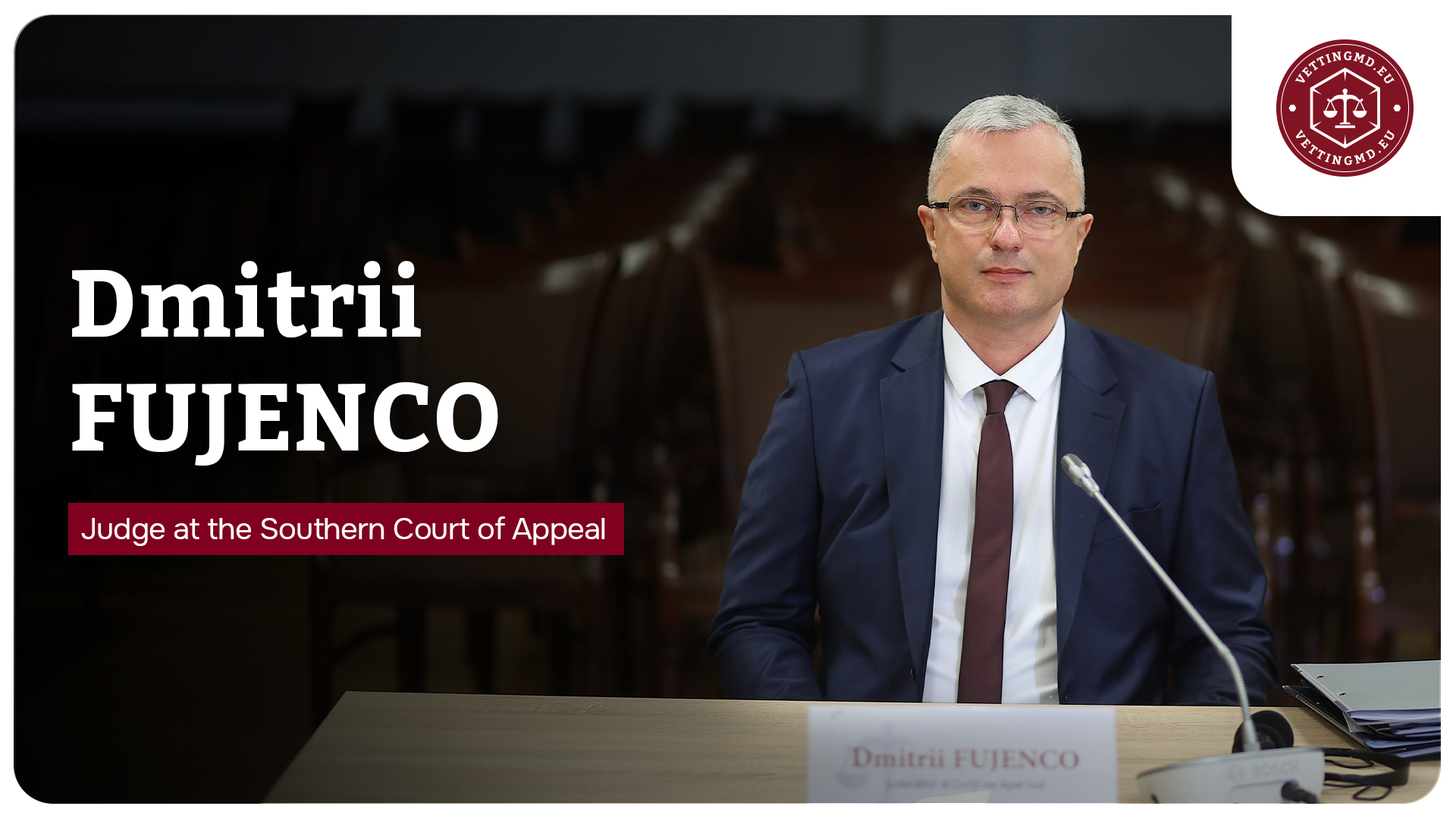 Comisia de Evaluare a Judecătorilor a finalizat procedura de evaluare a lui Dmitrii Fujenco, magistrat la Curtea de Apel Sud, și a transmis Consiliului Superior al Magistraturii raportul cu propunerea ca acesta să nu promoveze evaluarea externă a integrității.