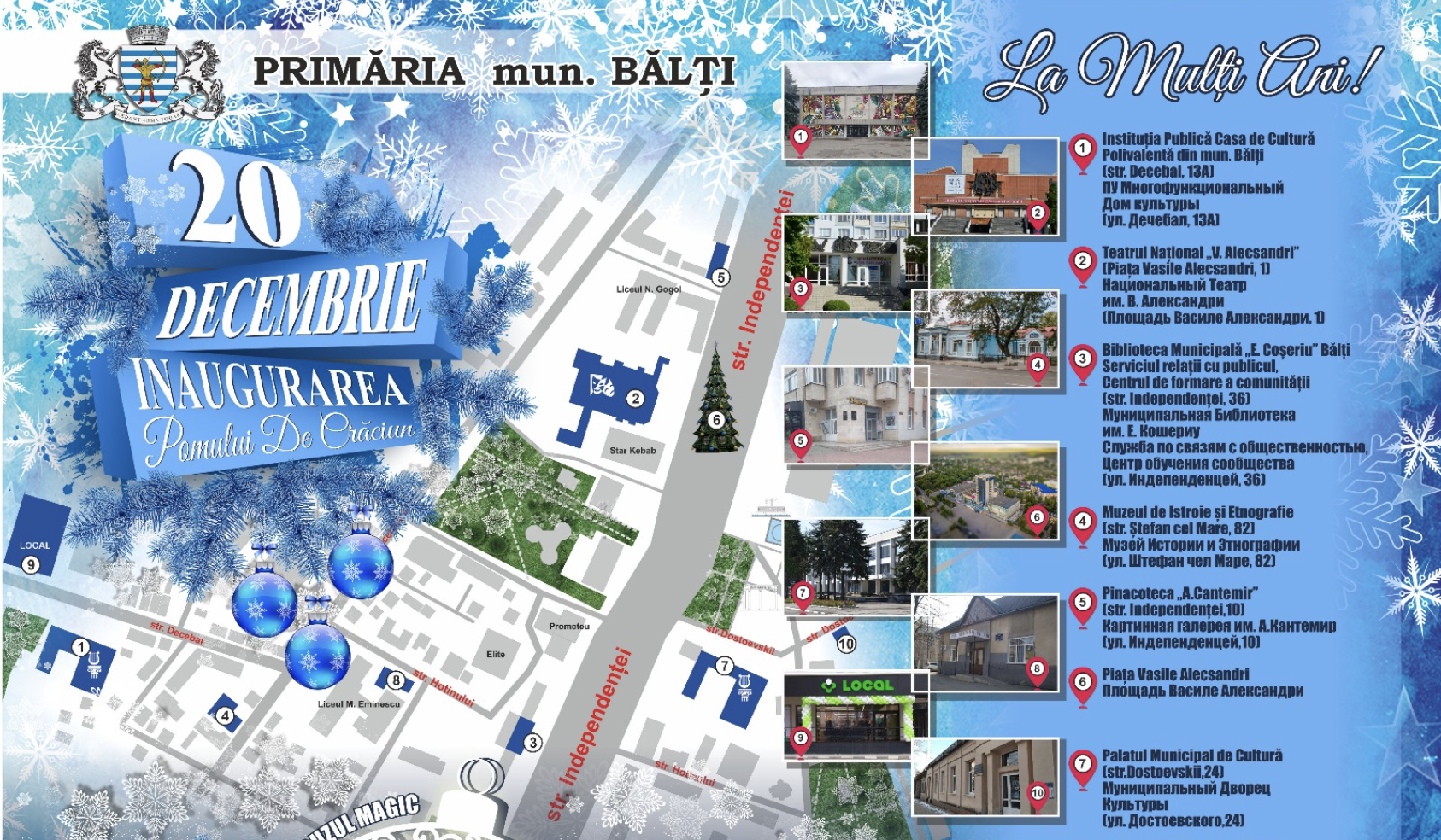Atmosfera de sărbătoare va fi completată de iluminatul festiv extins pe mai multe artere din oraș, un gest menit să aducă bucurie bălțenilor în această perioadă specială a anului.