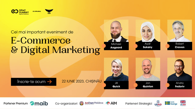 O conferință dedicată comerțului electronic și marketingului digital va fi organizată pe 22 iunie 2023, în premieră la Chișinău, în parteneriat cu GPeC România (Gala Premiilor e-Commerce).