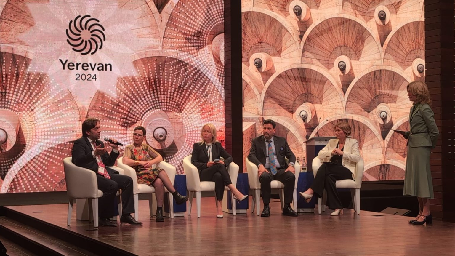 În marja aceluiași eveniment de la Erevan a urmat sesiunea „Moldova Investment Outlook”, unde Dumitru Alaiba a prezentat Moldova ca o țară plină de oportunități și inovație, care se adaptează și evoluează.