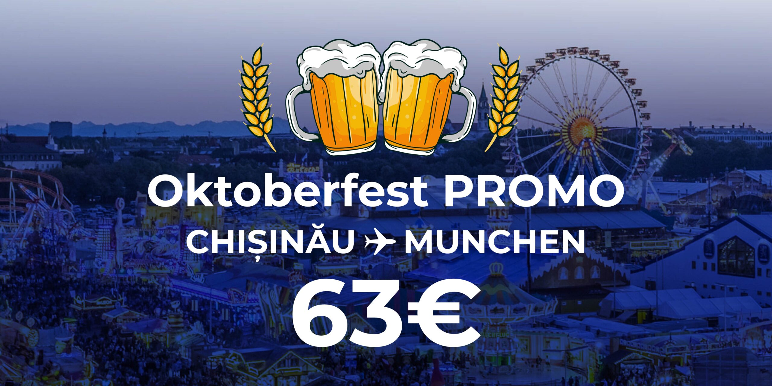 Această ofertă te ajută să economisești bani și să trăiești experiența de neuitat a Oktoberfest în Munchen sau să explorezi frumosul oraș Chișinău. Nu rata această oportunitate, biletele la acest preț sunt limitate și se epuizează rapid! Prinde momentul și fii parte din această sărbătoare autentic germană alături de FLYONE!