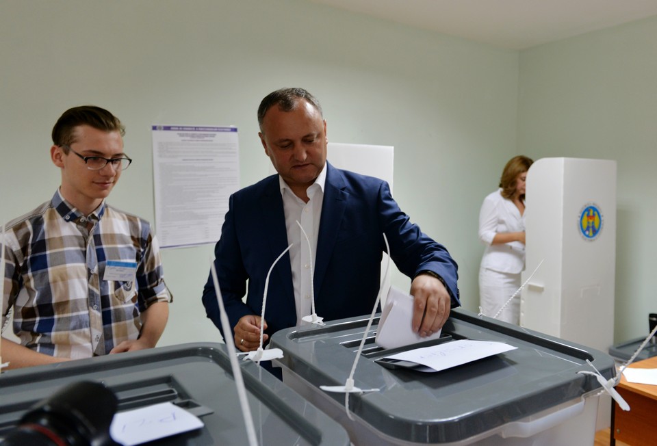 Exercitarea votului de către copreședintele Blocului electoral Patriotic al Socialiștilor, Comuniștilor, Inima și Viitorul Moldovei, Igor Dodon