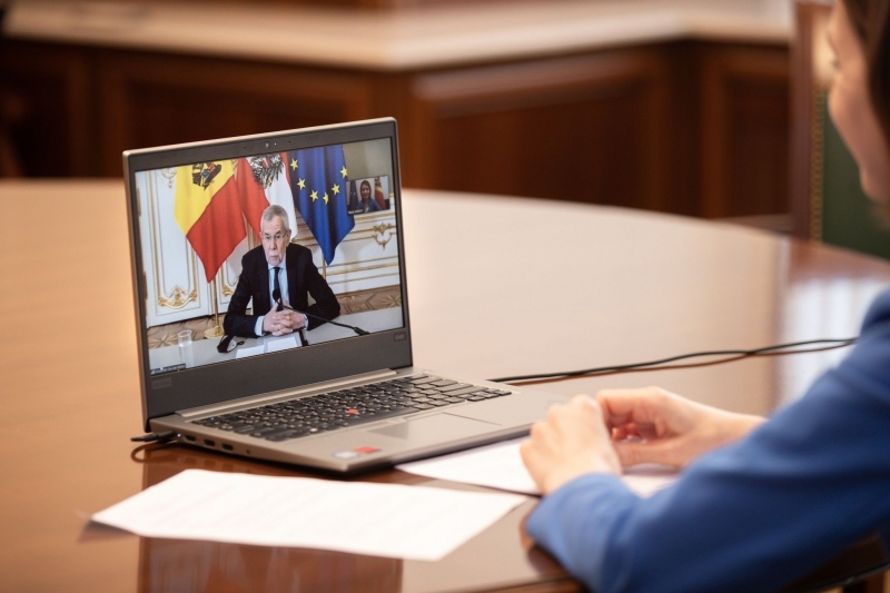 Președintele Republicii Moldova, Maia Sandu, a avut ieri o discuție online cu Președintele Austriei, Alexander Van der Bellen. Șefa statului i-a mulțumit pentru sprijinul acordat țării noastre, inclusiv pentru combaterea pandemiei, atât prin donații directe de echipament și materiale de protecție, cât și prin platforma COVAX.