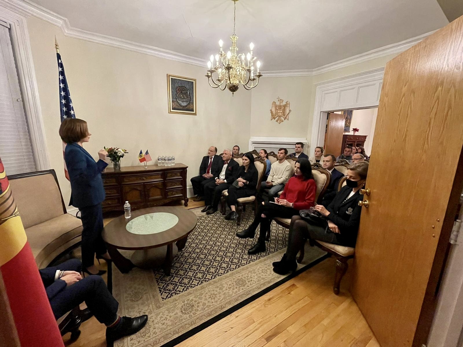 Maia Sandu s-a reîntâlnit, la Washington, cu moldovenii din diasporă, ”care de-a lungul anilor se implică activ în proiecte și activități atât în Moldova, cât și în SUA”.