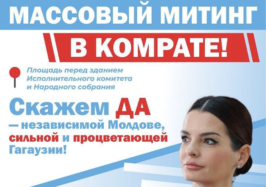 Duminică, 3 august, în Comrat va avea loc un miting de susținere a Bașcanei Găgăuziei, Evghenia Guțul. Acțiunea se va desfășura în piața din fața sediului Comitetului Executiv, începând cu ora 18:00. Sunt așteptați mii de participanți.
