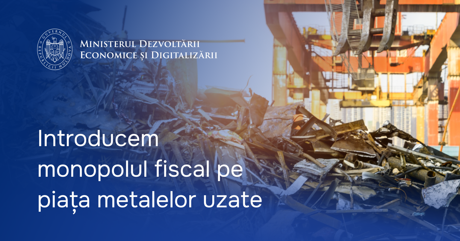 Ținând cont de evoluțiile din sectorul pieței metalelor uzate, Ministerul Dezvoltării Economice și Digitalizării examinează oportunitatea instituirii monopolului de stat asupra activității de livrare de resturi și deșeuri de metale feroase și neferoase către agenții economici aflați pe teritoriul Republicii Moldova și care nu au relații fiscale cu sistemul ei bugetar.