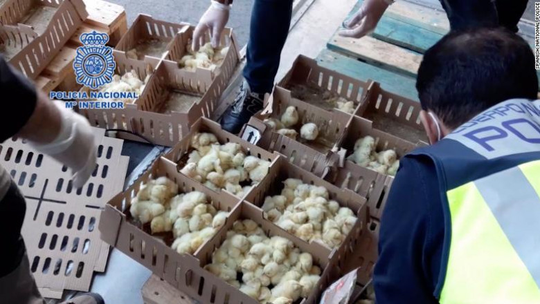 Mii de pui de găină, găsiți morți în cutii de carton, pe un aeroport din Madrid