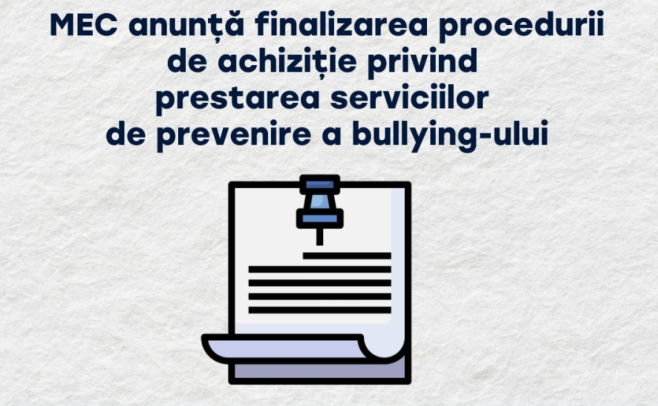 Ministerul Educației și Cercetării a finalizat procedura de achiziție publică pentru serviciile de intervenție și prevenire a cazurilor de bullying în instituțiile de învățământ primar și secundar, realizată prin licitație deschisă.