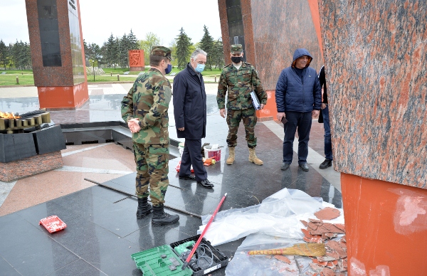 Astfel, au fost verificate piramida cu cinci puşti de 25 metri înălţime, steaua cu cinci colţuri şi flacăra veşnică din centrul monumentului. De asemenea, au fost examinate pavajul de la monumentul „Maica Îndurerată”, Stela eroilor, precum şi plăcile de granit cu numele soldaţilor căzuţi în lupte.