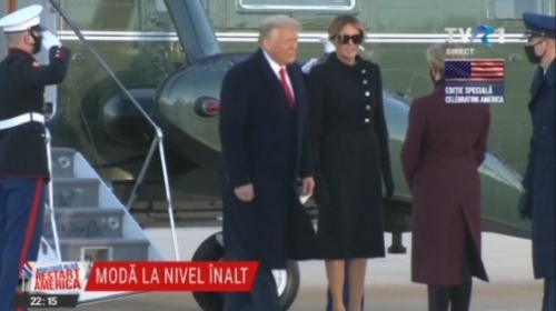La plecarea de la Casa Albă spre Florida, fosta primă doamnă Melania Trump a purtat un deuxpiece sobru, negru, iar două ore mai târziu, la coborârea din avion, în însorita Florida, Melania trecuse la o rochie casual.