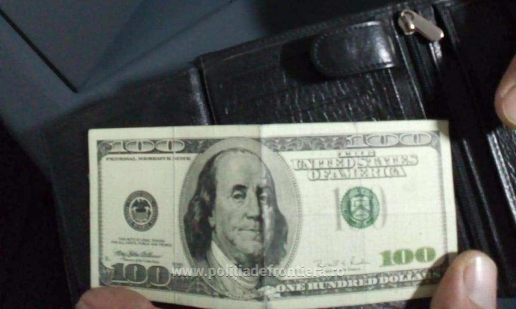 În baza analizei de risc pe linia combaterii documentelor false sau falsificate, s-a efectuat un control amănunţit asupra bărbatului, în urmă căruia a fost descoperită, ascunsă în portofelul acestuia, o bancnotă de 100 de dolari SUA, care nu îndeplinea condiţiile de formă şi fond ale uneia autentice, fiind falsă.