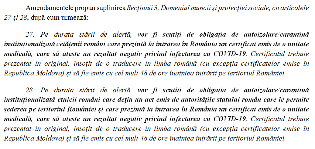 Cele două amendamente au drept obiectiv facilitarea reintegrării imediate în câmpul muncii a cetățenilor care revin în țară și care nu pot munci de acasă, dar şi a persoanelor care s-au aflat temporar în afara țării în ultima perioadă.