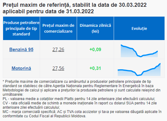 Benzina se va scumpi joi, 31 martie, cu 9 bani și va costa 27,26 lei.