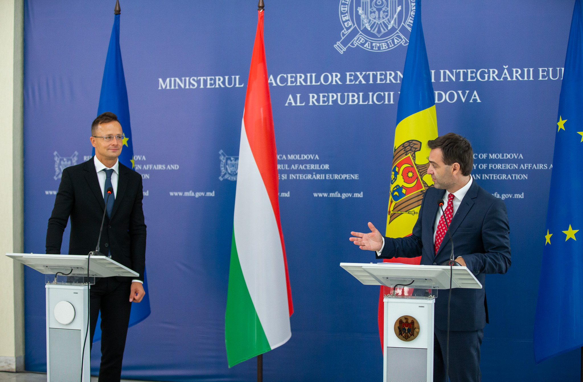 Ministrul de Externe de la Budapesta se află într-o vizită oficială în Republica Moldova. În cadrul discuțiilor cu Popescu, s-a vorbit inclusiv despre sprijinul Ungariei pentru ca Moldova să adere la UE, dar și despre posibilitățile de revenire a WizzAir, în contextul în care Aeroportul a revenit în gestiunea statului.