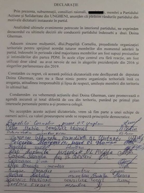 Mai mulți membri ai Partidului Acțiune și Solidaritate din Ungheni, printre care și ex-președintele Organizației Teritoriale, Corneliu Prepeliță, au anunțat că părăsesc formațiunea, transmite Telegraph.md, cu referire la Ziarul de Gardă